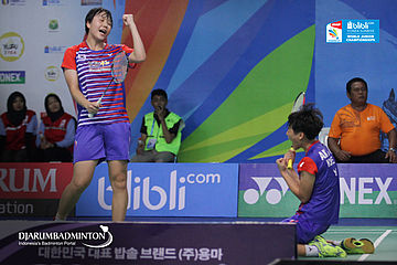 Selebrasi Se Young An/Min Jeong (Korea) Ketika Memenangkan Pertandingan