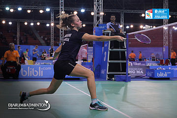 Katarina Vargova (Slovakia) Mengembalikan Shuttlecock