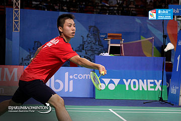 Kodai Naraoka (Japan) Mengembalikan Shuttlecock