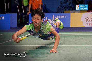 Se Young An (Korea) Berusaha Menggapai Shuttlecock