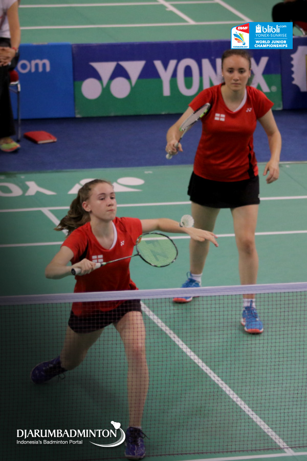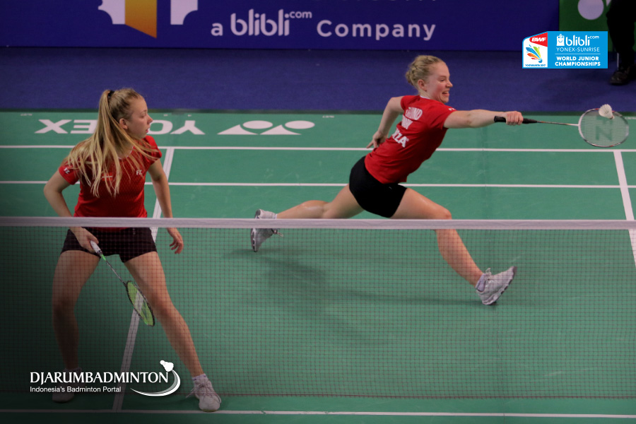 Emma Moszczynski/Jule Petrikowski (Germany) Mencoba Mengembalikan Shuttlecock