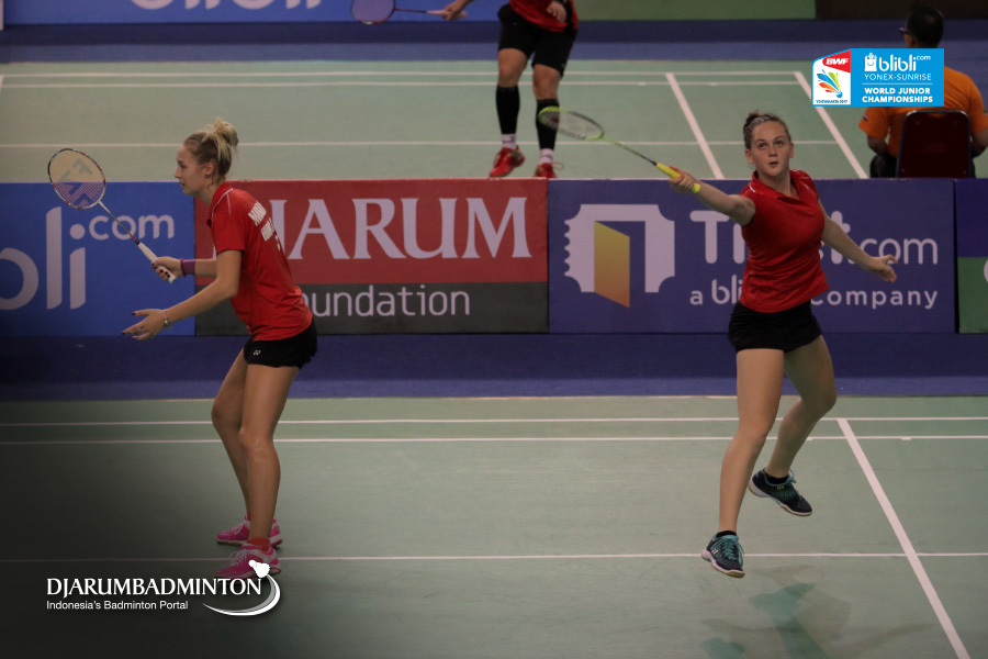 Reka Madarasz/Vivien Sandorhazi (Hungary) Menahan Serangan Lawan