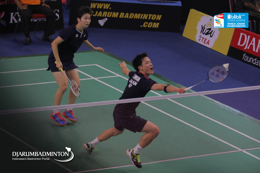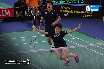 Takuma Obayashi/Natsu Saito (Japan) Berusaha Menggapai Shuttlecock