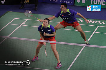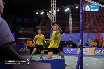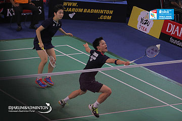 Keng Yin Royston Loh/Wong Jia Ying Crystal (Singapore) Berusaha Menggapai Shuttlecock