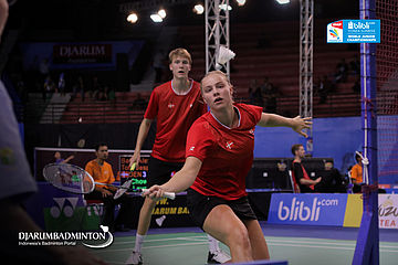 Alexandra Bøje/Jesper Toft (Denmark) Bersiap Mengembalikan Shuttlecock