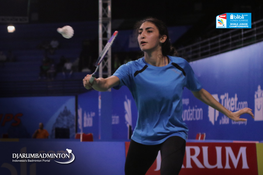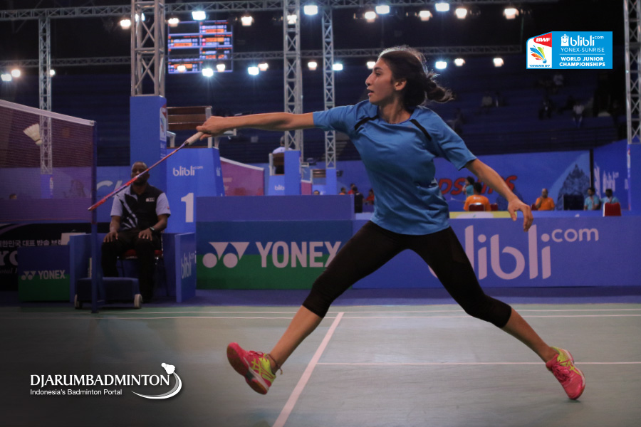 Jana Ashra (Egypt) Berusaha Menggapai Shuttlecock