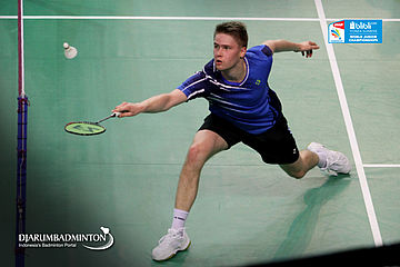 Anton Monnberg (Finland) Mengembalikan Shuttlecock