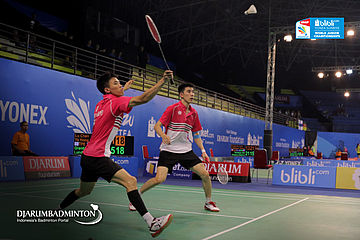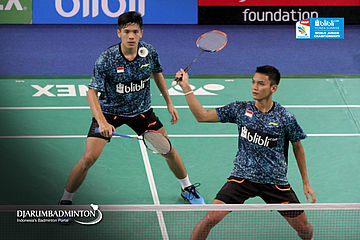 Muhammad Shohibul Fikri/Yeremia Erich Yoche (Indonesia) Bersiap Mengembalikan Shuttlecock