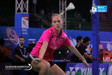 Reka Madarasz (Hungary) Bersiap Mengembalikan Shuttlecock