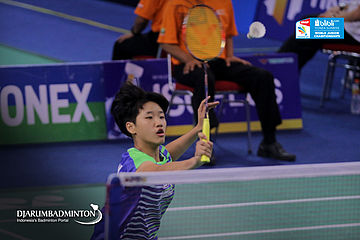 Zhou Meng (China) Berusaha Menggapai Shuttlecock