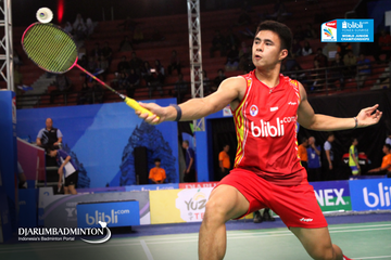 Ikhsan Leonardo Imanuel Rumbay (Indonesia) Mengembalikan Shuttlecock