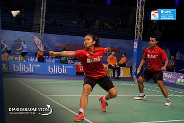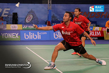 Rehan Naufal Kusharjanto/Siti Fadia Silva Ramadhanti (Indonesia)Mengembalikan Shuttlecock