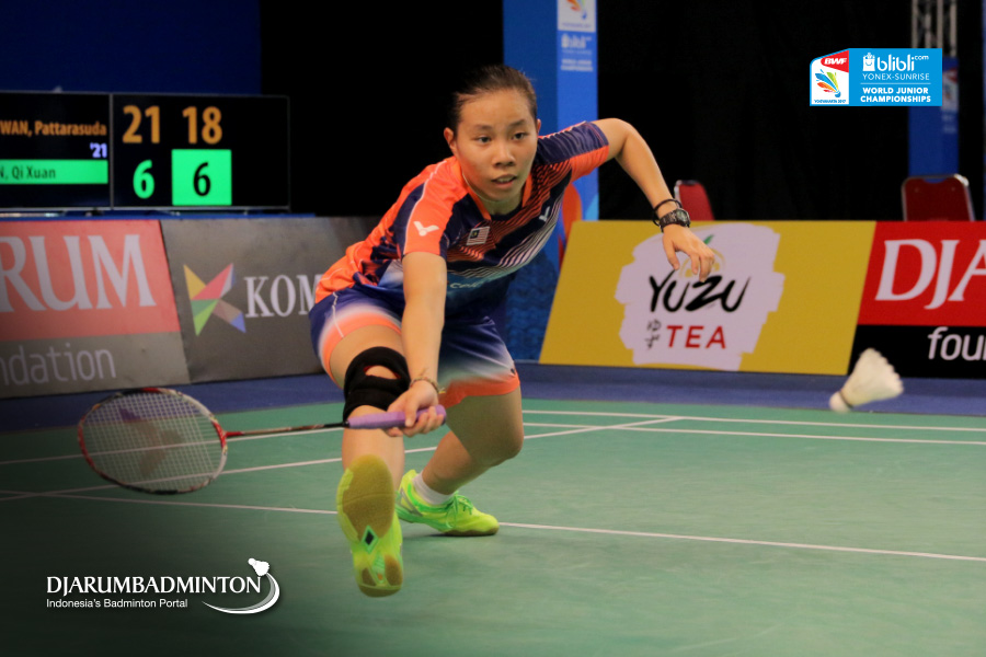 Qi Xuan Eoon (Malaysia) Berusaha Menggapai Shuttlecock