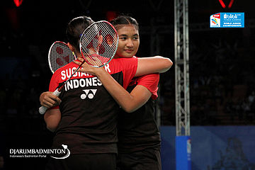 Jauza Fadhila Sugiarto/Ribka Sugiarto (Indonesia) Jangkau Shuttlecock