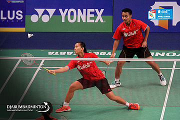 Rinov Rivaldy/Pitha Haningtyas Mentari (Indonesia) Mengembalikan Serangan