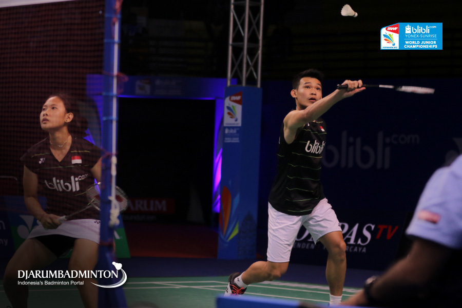 Yeremia Erich Yoche Yacob/Rinov Rivaldy (Indonesia) Jangkau Shuttlecock