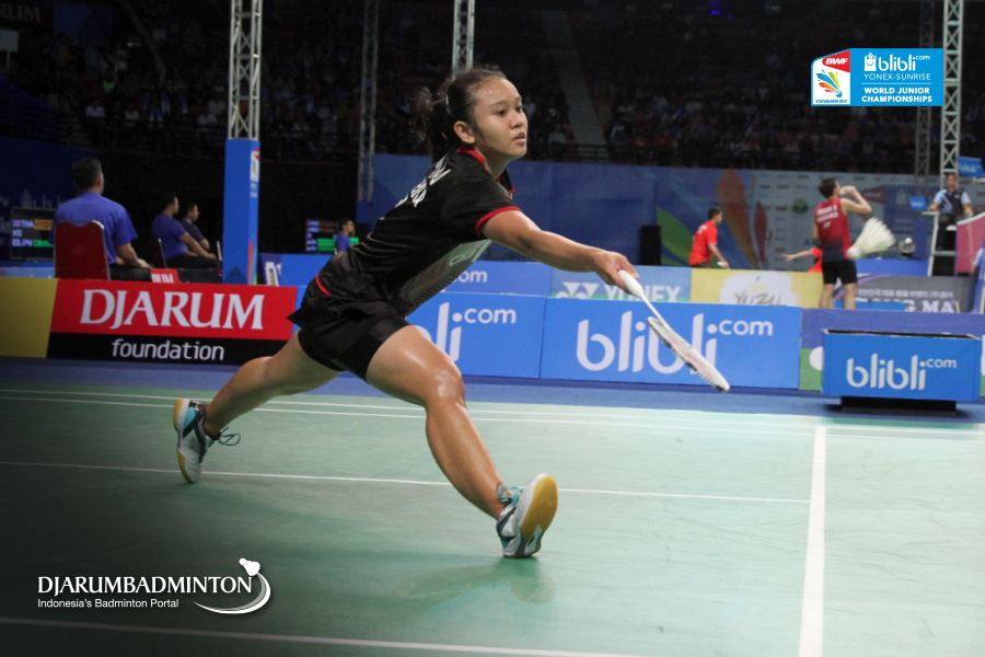 Aurum Oktavia Winata (Indonesia) Berusaha Menjangkau Shuttlecock