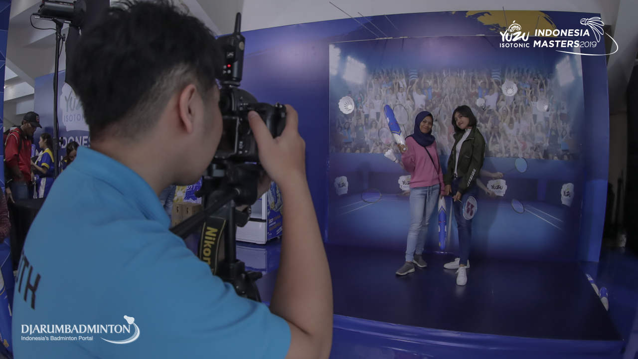 Dua orang pengunjung sedang berfoto di Booth Yuzu
