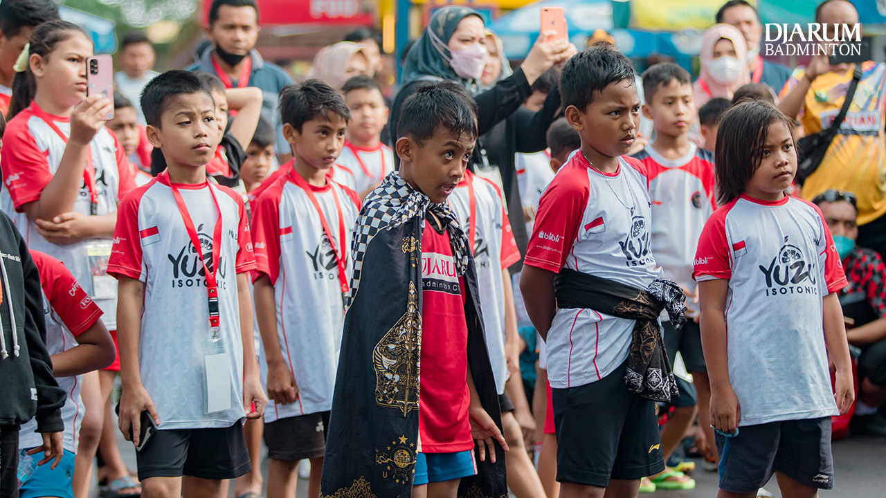 Para peserta Audisi Umum PB Djarum 2022 memasuki lapangan