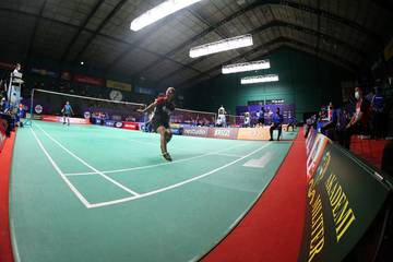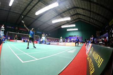 Tunggal putri Fitriani (Exist Badminton Club) dan Mutiara Ayu Puspitasari (PB Djarum Kudus)