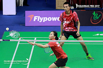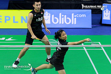 Andika Ramadiansyah/Mychelle Christine Bandaso (Jawa Tengah) Mengembalikan Shuttlecock