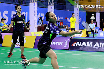 Annisya Widya Permatasari/Karina Ria Hardianti (Jawa Barat) Mengembalikan Shuttlecock