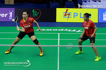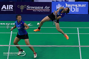Tania Oktaviani Kusumah/Vania Arianti Sukoco (Jawa Tengah) Melakukan Smash