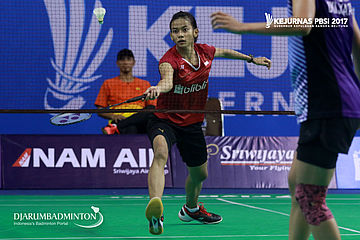 Dinar Dyah Ayustine (Jawa Tengah) Mengembalikan Shuttlecock