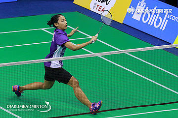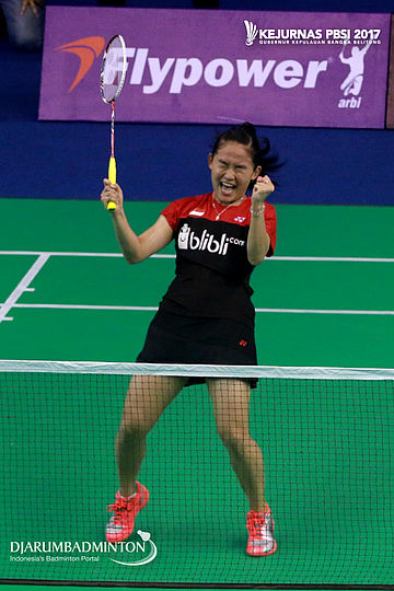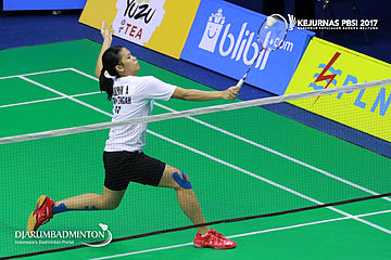Bening Sri Rahayu (DKI Jakarta) Berusaha Menjangkau Shuttlecock