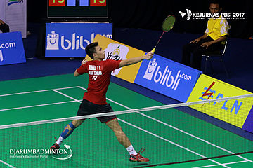 Gatjra Piliang Fiqihilahi Cupu (DKI Jakarta) Berusaha Menjangkau Shuttlecock