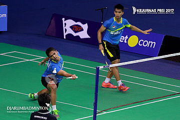 Frengky Wijaya Putra/Sabar Karyaman Gutama (DKI Jakarta) Melepaskan Serangan