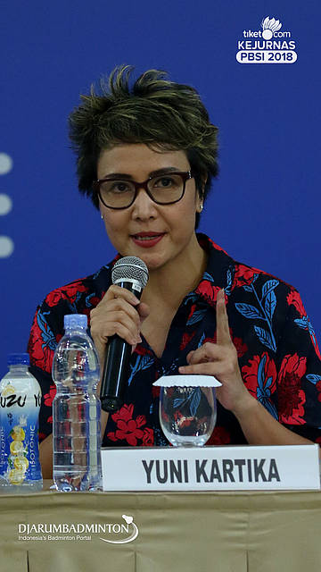 Susy Susanti (Ketua Binpres) Menjawab pertanyaan wartawan.