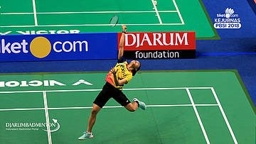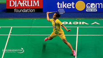 Ruselli Hartawan (Jaya Raya Jakarta) Mencoba menggapai shuttlecock