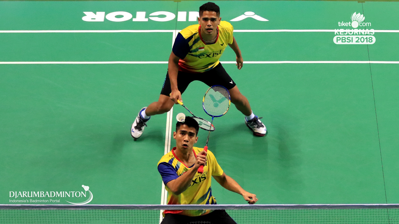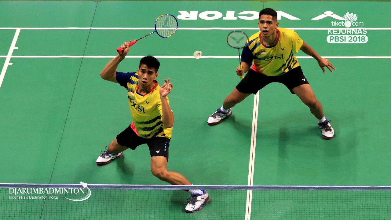 Frengky Wijaya Putra+Sabar Karyaman Gutama (Exist, Jakarta) Mencoba menyambar pengembalian lawan