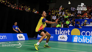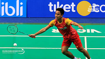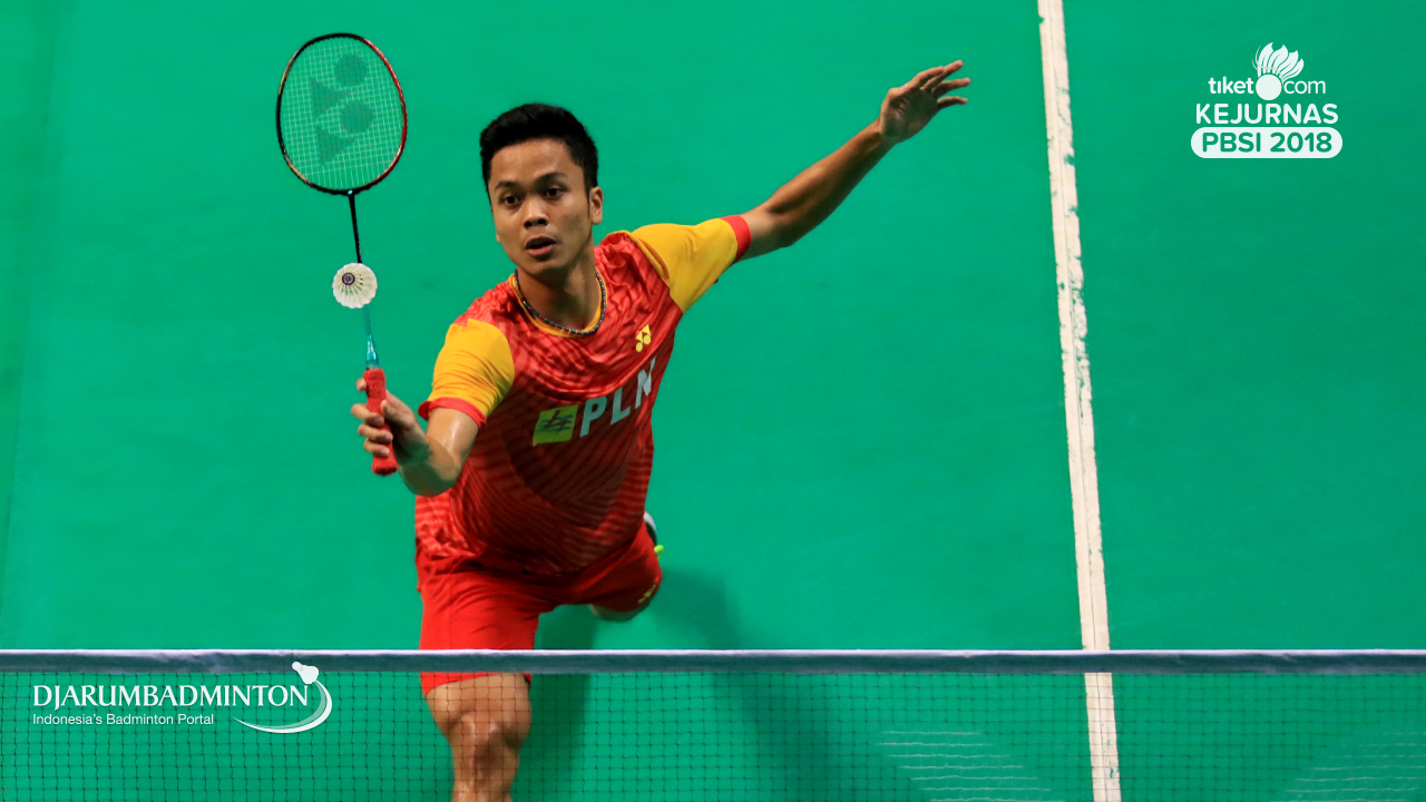 Anthony Sinisuka Ginting (SGS PLN Bandung) menahan serangan