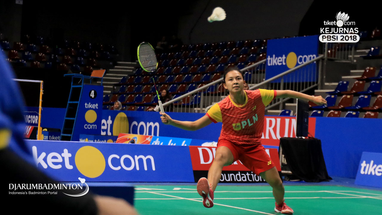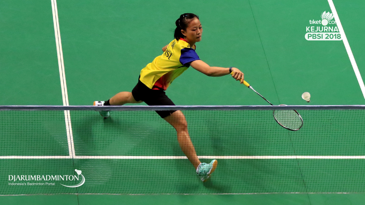 Putri Ayu Desiderianti (SGS PLN Bandung) Mencoba menggapai shuttlecock