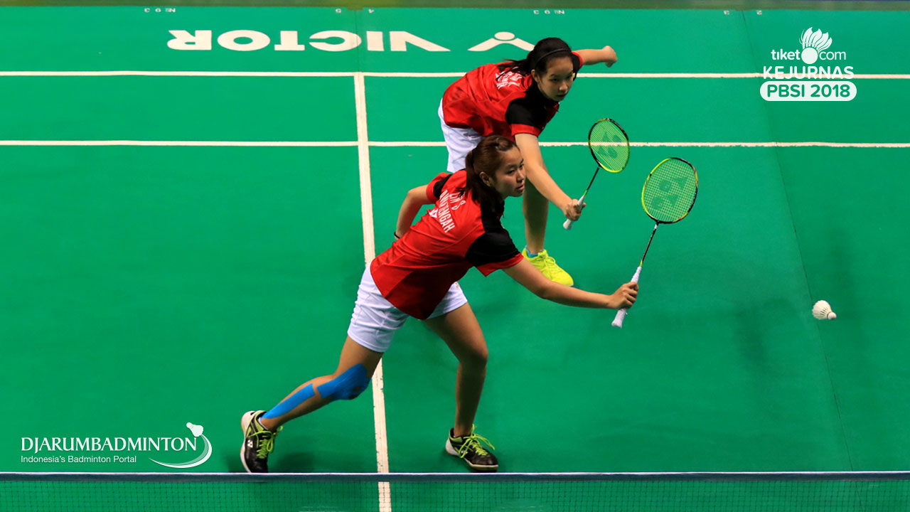 Denisa Dwi Syawaliah Budiani+Nahla Aufa Dhia Ulhaq (DKI Jakarta) Mencoba menahan serangan