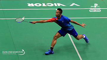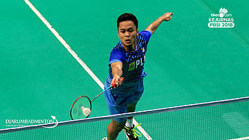 Anthony Sinisuka Ginting (SGS PLN Bandung) Berusaha menggapai shuttlecock
