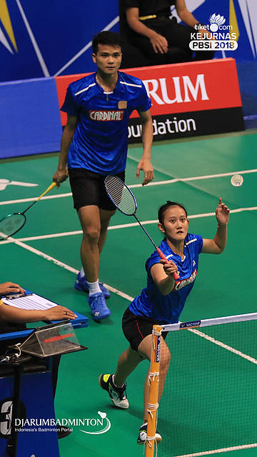 Bunga Fitriani Romadhini+Ricky Karanda Suwardi (Mutiara Cardinal Bandung) Bersiap menyambar pengembalian lawan