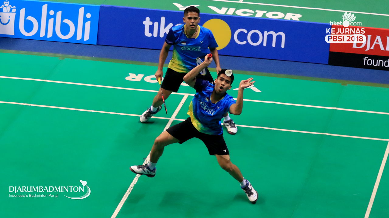 Frengky Wijaya Putra+Sabar Karyaman Gutama (Exist Jakarta) Mengembalikan shuttlecock