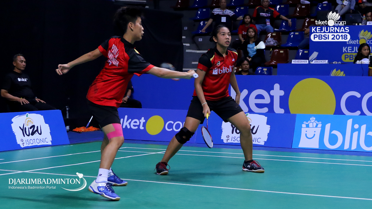 Dejan Ferdinansyah+Tsavanne Bethalia Putri Mertoso (DKI Jakarta) Mengembalikan shuttlecock