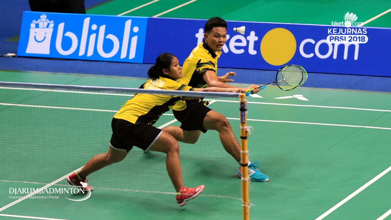 Naufal Ligo Saufik+Khusnul Khatimah (Jawa Tengah) Bersiap menyambar shuttlecock