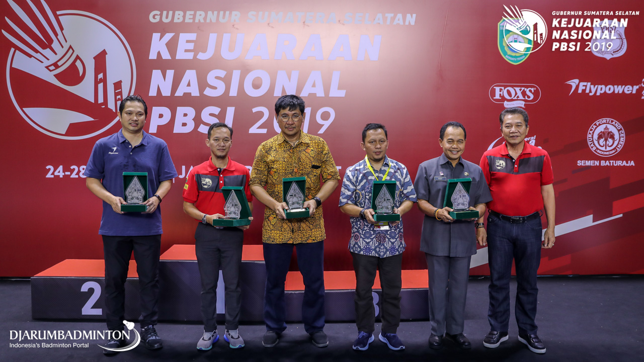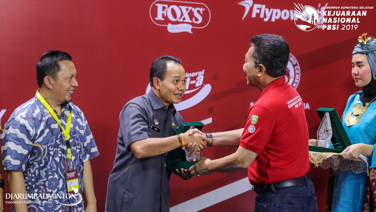 Penyerahan penghargaan kepada Sponsor oleh Sekretaris Jenderal PP PBSI, Achmad Budiharto