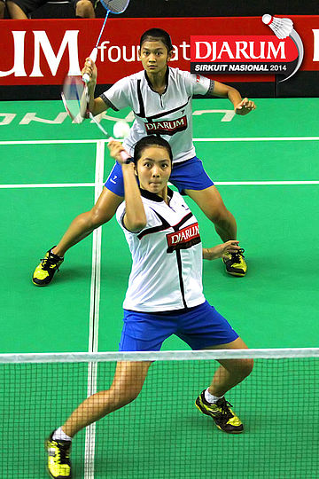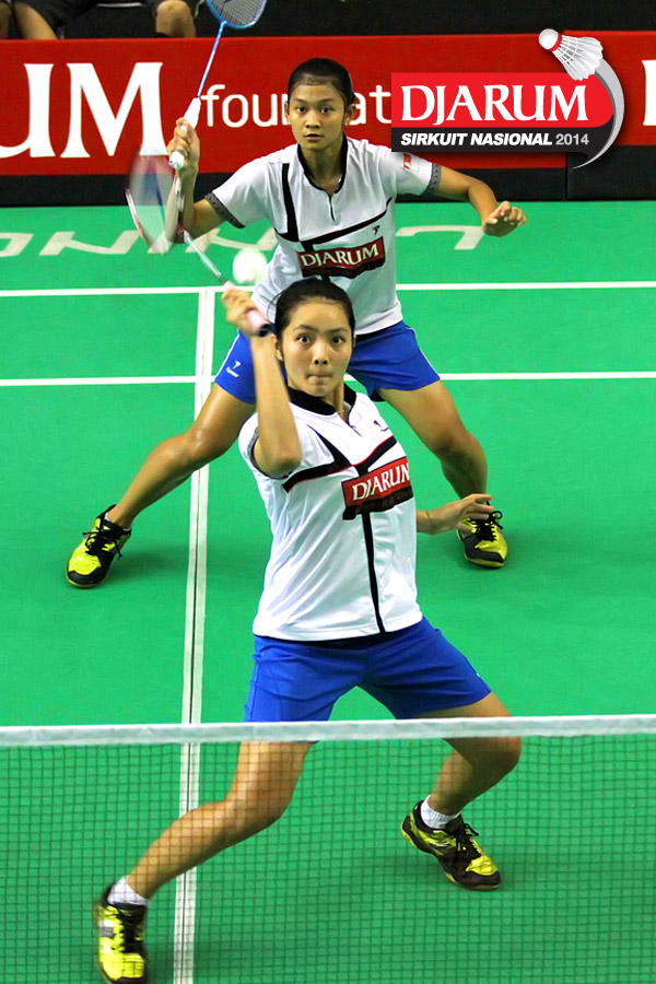 Marsheilla Gischa/Ramadhani Hastiyanti (PB Djarum) berhasil menghadang pengembalian dari Nisak Puji/Rika Rositawati (Mutiara Bandung)