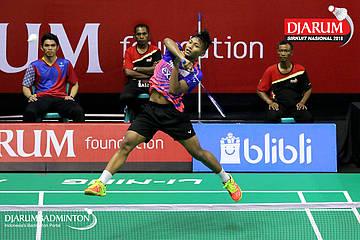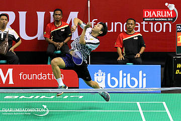 Jason Rivaldo Sutrisno (Daihatsu Candra Wijaya) menyambar pengembalian