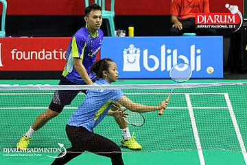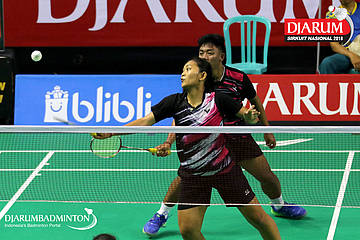 Rizko Asuro/Keshya Nurvita Hanadia (Pertamina Fastron, Jakut+Berkat Abadi, Banjar) menyambar pengembalian