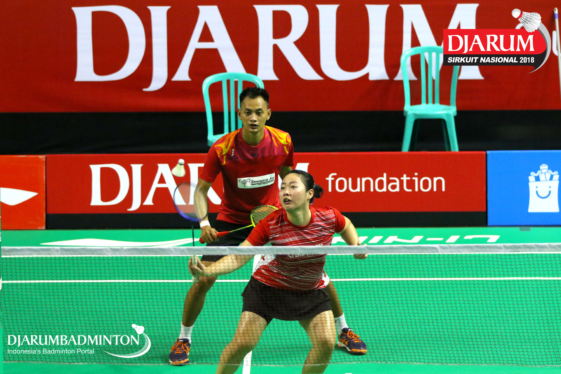 Putra Eka Rhoma/Nadiya Melati (Jaya Raya Jakarta, Jakpus+Pertamina Fastron, Jakut) bersiap menyambut serangan