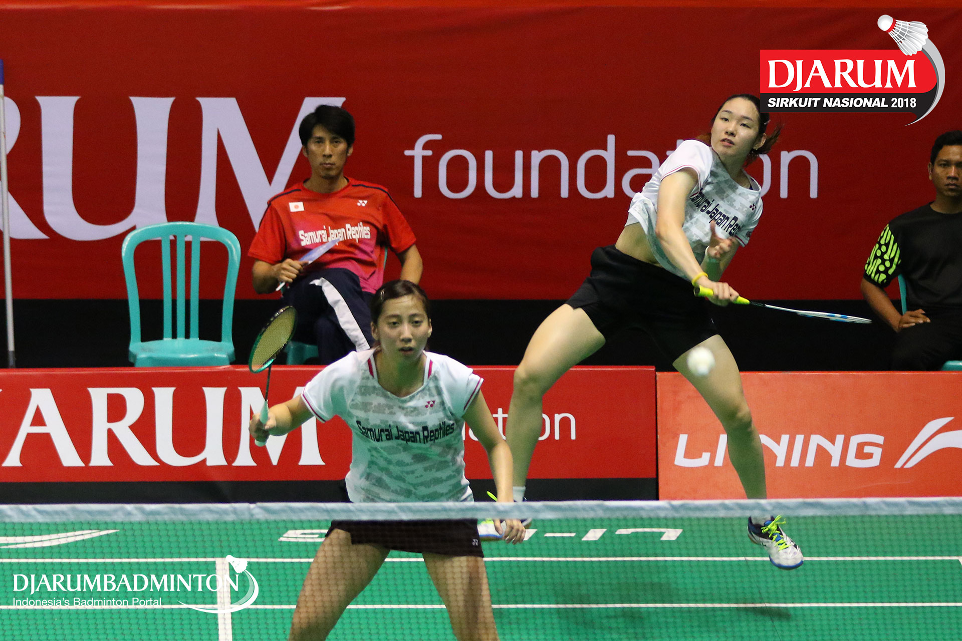 Araki Akane/Imai Riko (Japan) melepaskan serangan