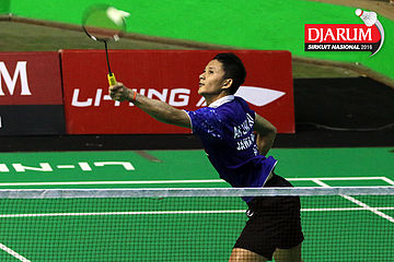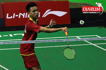 Riyanto Subagja (Djarum Kudus) mengembalikan shuttlecock