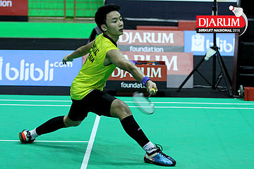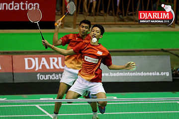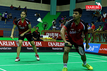 Bernadus Bagas K/Indah Cahya Sari (Djarum Kudus) Mengembalikan shuttlecock
